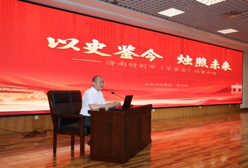 表彰会后,济南市档案馆副馆长李兴家为师生作了“红色档案——济南特别市(军管会)时期的档案史实”专题讲座。