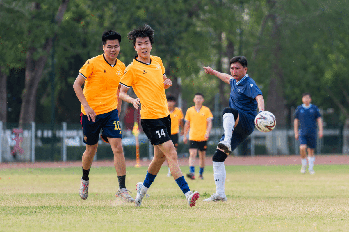 刘宗明校长和程新教授为本届毕业杯足球赛开球。随着裁判员开场哨响,绿茵场上双方队员迅速进入状态,带球突破、精妙传球、奋力扑救,每一个精彩瞬间都展现出济大人拼搏向上的精神风貌。场边观众们热情高涨,此起彼伏的“济大加油”声浪,将比赛氛围推向高潮。终场结束,毕业生代表队以3:1的比分赢得了本场比赛,师生互致问候、依依惜别。一年一度的师生足球赛,不仅是一场体育竞技,更是师生之间情感交流的桥梁,让济大校园的温暖与活力在绿茵场上尽情绽放。