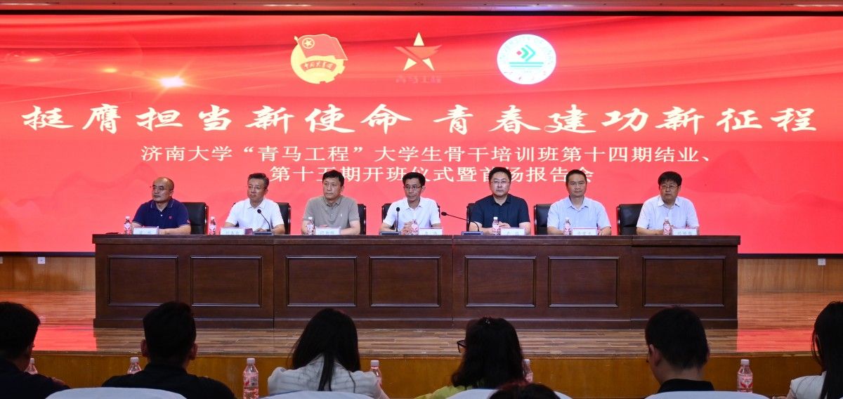 “青马工程”第十四期大学生骨干培训班优秀学员代表逯一鸣同学表示,过去一年,155名青马学子们深学细悟政治理论,不断筑牢思想根基,在红色教育中感悟英雄磅礴力量,自觉赓续红色精神血脉,在躬身力行中书写着“青马人”的青春风采,用行动彰显力量,以奉献诠释担当。“青马工程”第十五期学员代表体育学院马怀琛同学承诺,新一期“青马”学员将做理论武装的“排头兵”、知行合一的“实干者”、强国伟业的“奋斗者”,牢记习近平总书记嘱托,胸怀“国之大者”,以实干实绩兑现“请党放心,强国有我”的青春誓言,为中国式现代化建设贡献青春力量。