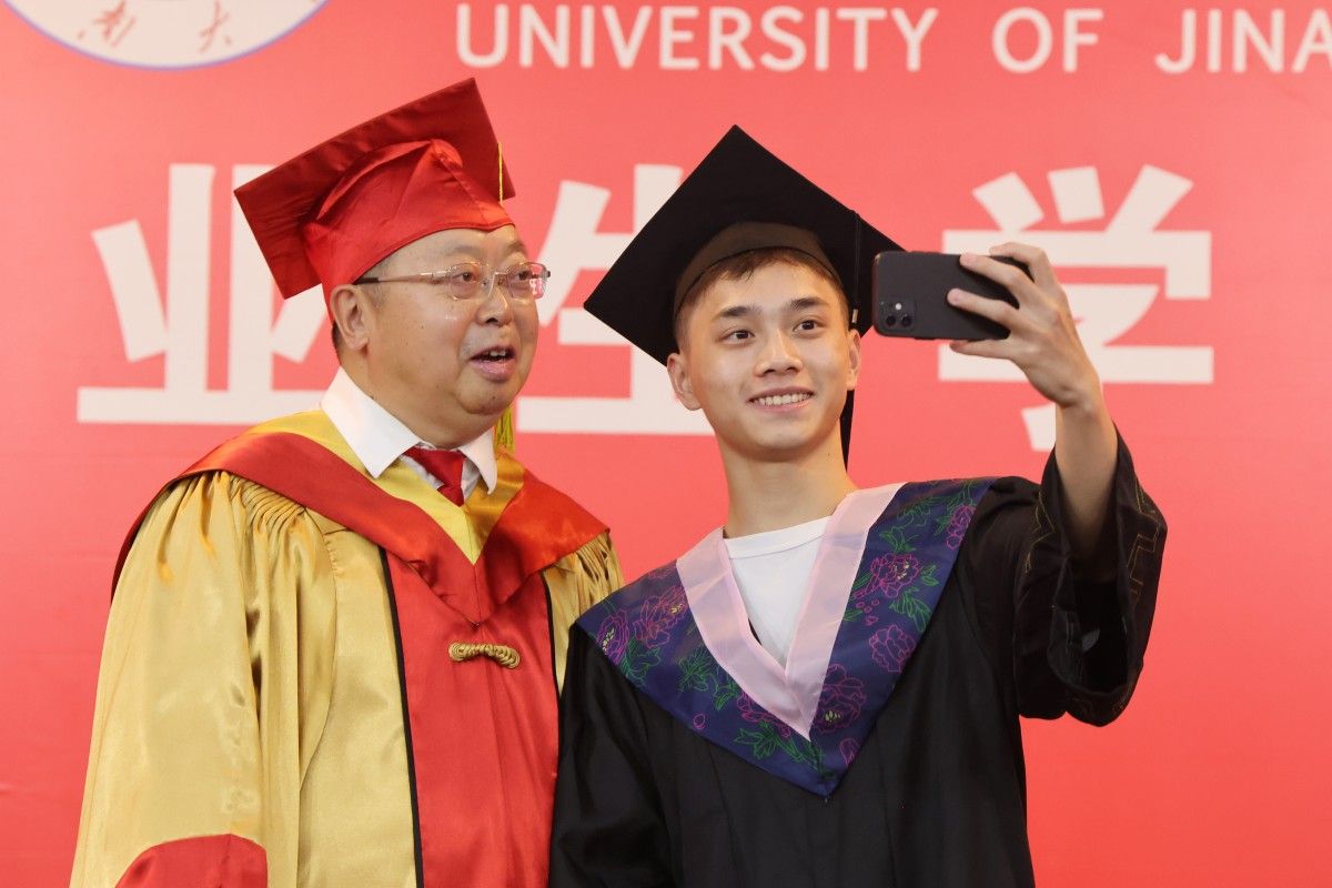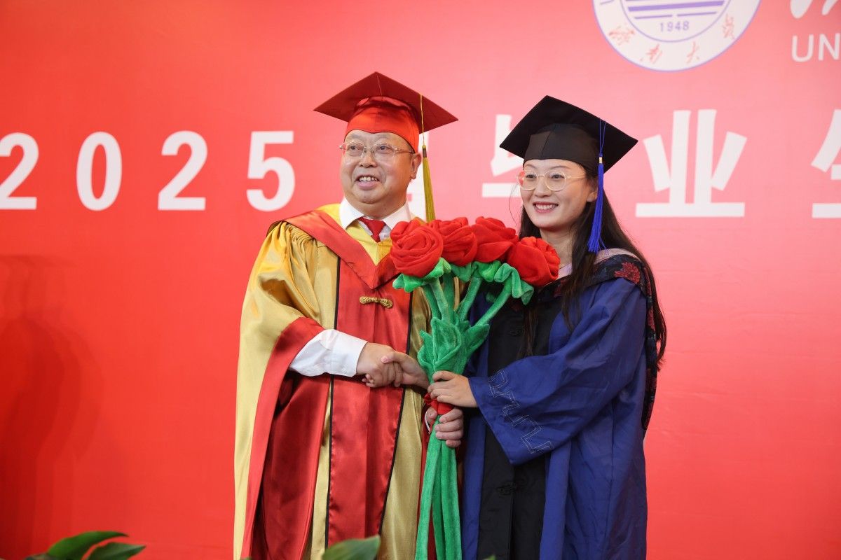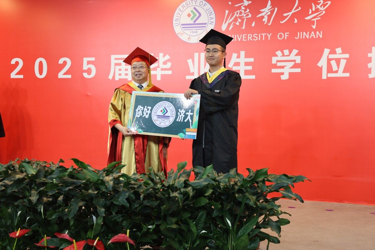 授予仪式上,各学院院长发表了深情的寄语。曾经,同学们带着行李箱和憧憬站在校门口;如今,你们的行囊里装着论文、各种荣誉和无数个挑灯夜读的奋斗历程即将离开校园。曾经,你们的目光里充满着青涩与好奇;如今,你们携着成长与勇气,目光坚定地奔赴远方。作为老师感到无比欣慰与自豪。在济大,你们践行着“弘毅、博学、求真、至善”的校训,不断锤炼品德、掌握实学、强大自我,练就一身本领的你们即将远行告别母校,愿你们此去前程似锦,归来仍是少年。