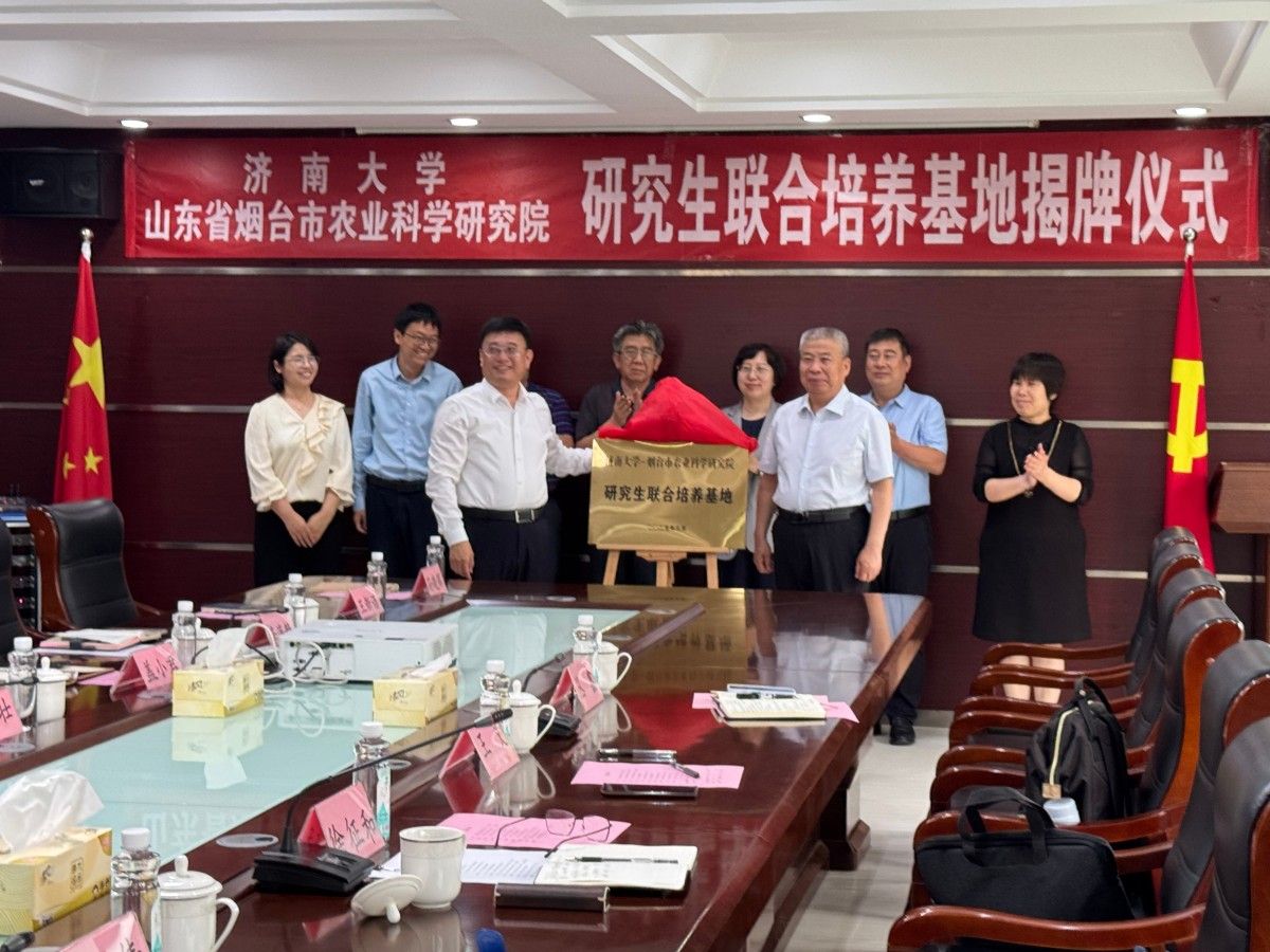 上午,校地双方在烟台市农业科学研究院举行“ac米兰官方网站研究生联合培养基地”揭牌仪式。烟台市农业农村局党组成员、副局长刘倩,烟台市农科院党委书记吴吉壮、党委副书记郭绪良等出席活动。
