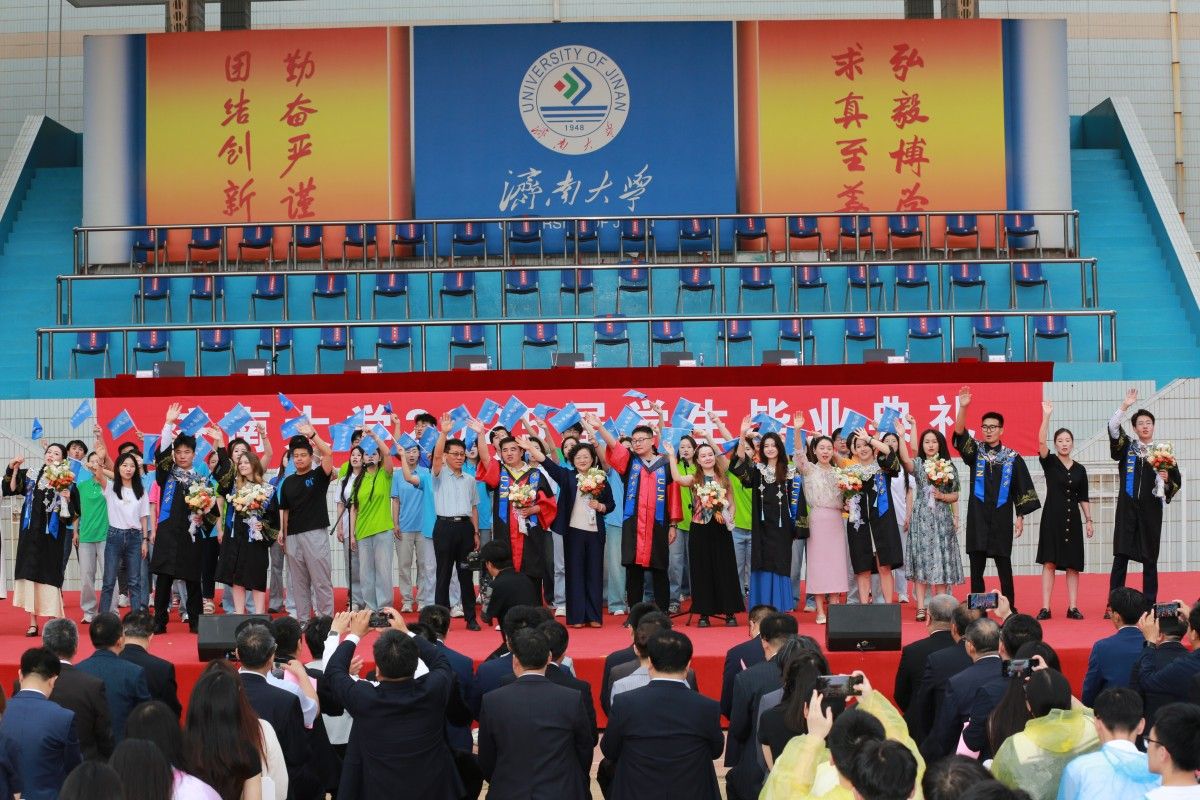 从右到左,穗穗皆成长;从今往后,步步皆辉煌……2025届学生学位授予仪式上,校长刘宗明用两天的时间,逐一为5000余名毕业生拨穗、握手、合影并亲切鼓励,各学院领导、教师、辅导员与毕业生们一一握手送别,送上祝贺与祝福。被济大学子称为“难忘一课”的学位授予仪式,已经持续17年。17年来,十万余名毕业生离校时都会收到一张和校长的合影,这成为大学生活的珍贵印记。校长的每一次拨穗,都是对青春的加冕和未来的嘱托,更是对大学精神的践行和教育温度的传递。
