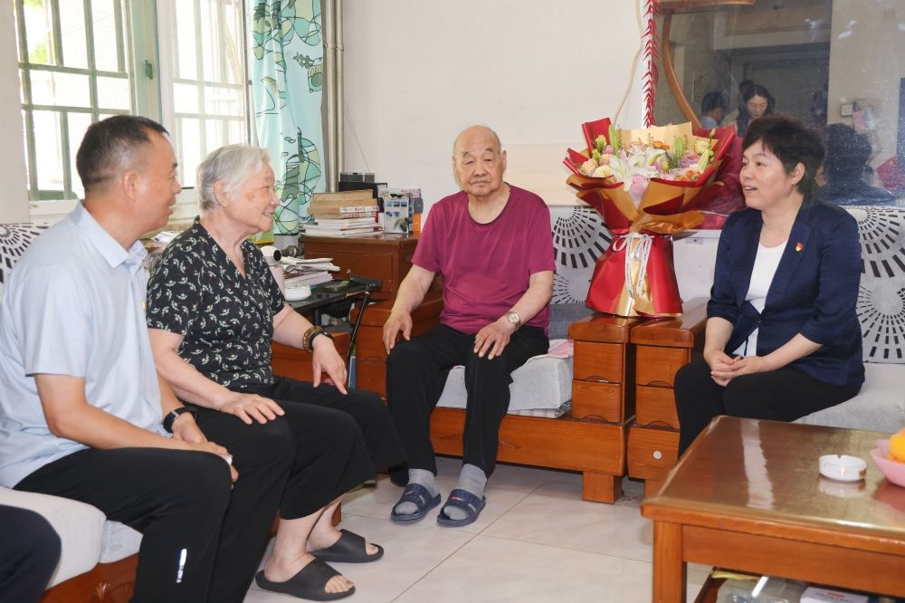 在离休老党员张际武家中,刘春华关切询问张际武的身体和生活情况,感谢他为学校建设作出的贡献,向他介绍了学校近年来取得的成绩,祝福他节日快乐、健康长寿。