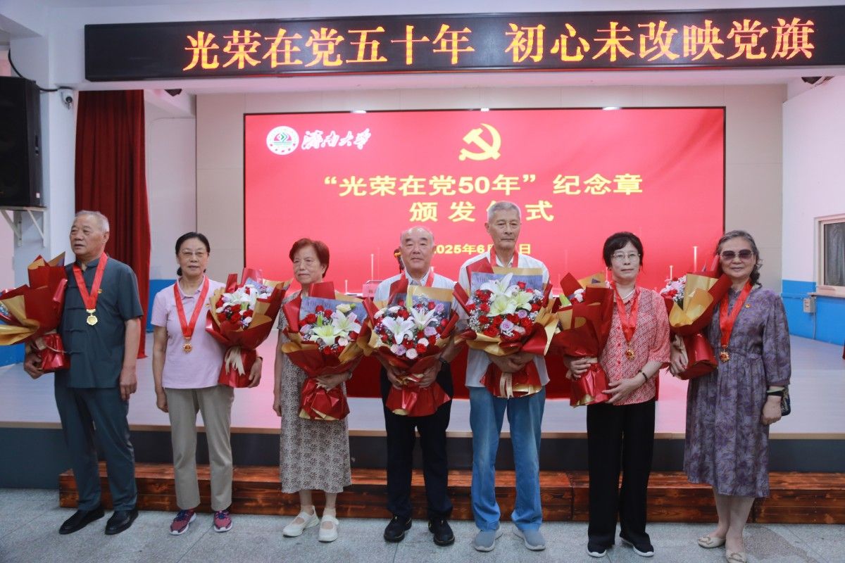 此次“光荣在党50年”纪念章颁发仪式,不仅是对老党员们五十年无悔初心为党和学校事业作出贡献的充分肯定,更是对全体党员的一次深刻党性教育和精神洗礼,激发了党员的责任感、使命感和归属感。光荣在党五十年,初心未改映党旗,学校将以此次活动为契机,进一步弘扬党的优良传统,推动全校师生党员薪火相传、接续奋斗,以初心赴使命,用实干显担当,共同谱写学校高质量发展新篇章。