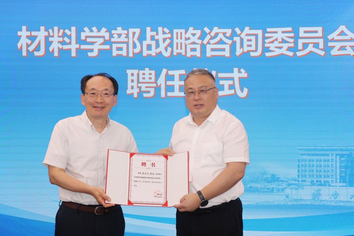 材料学部主任黄加栋为傅正义院士颁发材料学部战略咨询委员会主任委员聘书,傅正义院士为各位委员颁发材料学部战略咨询委员会委员聘书。