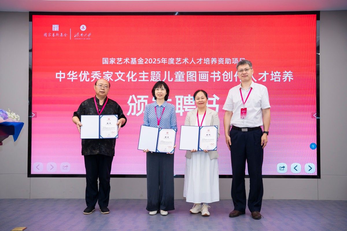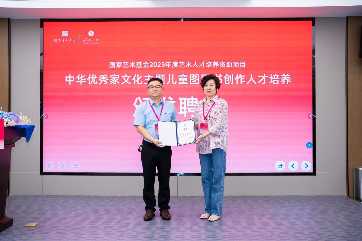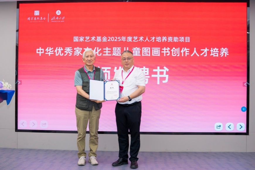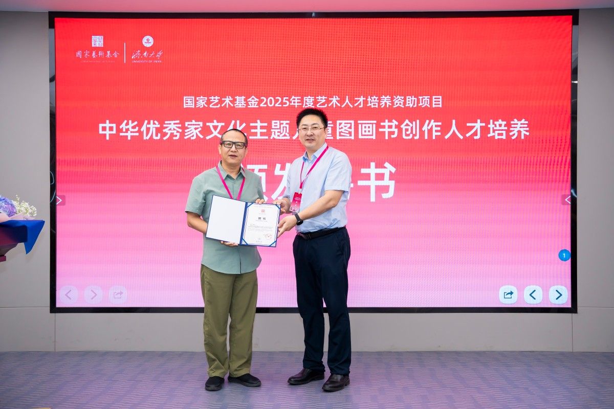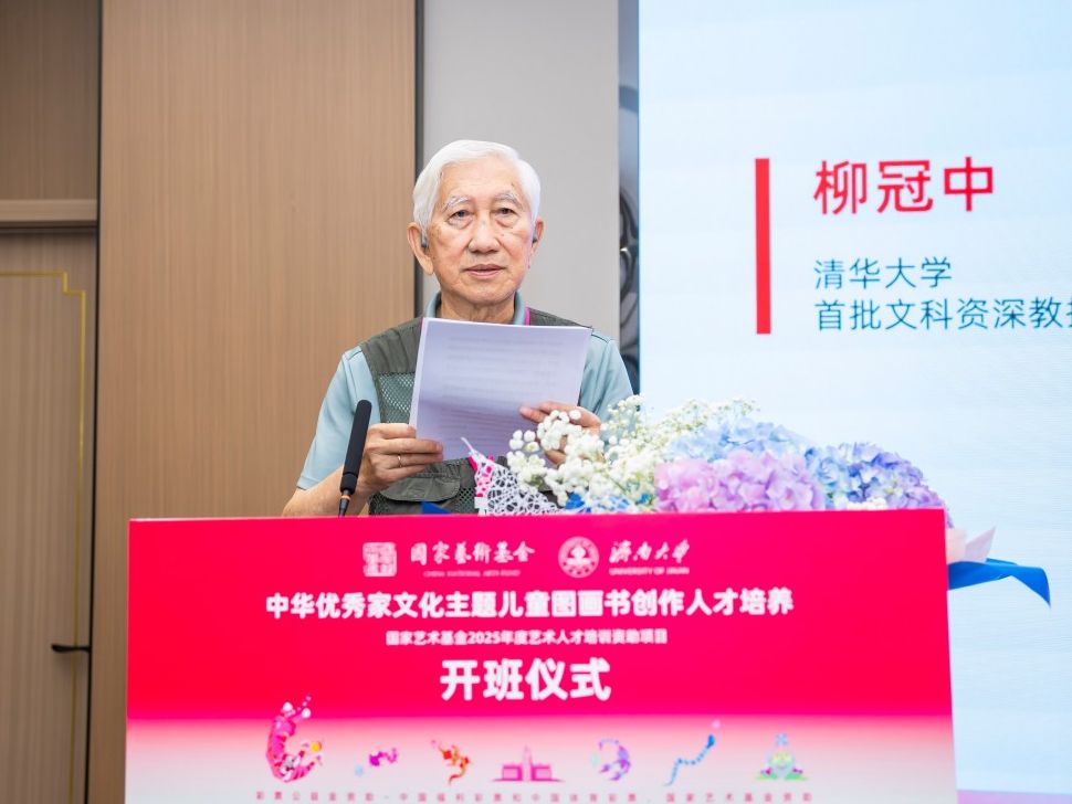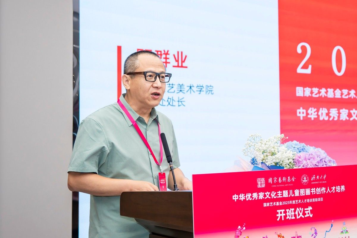 7月1日,国家艺术基金2025年度艺术人才培养资助项目“中华优秀家文化主题儿童图画书创作人才培养”开班仪式在ac米兰官方网站举行。清华大学首批文科资深教授柳冠中,山东省艺术研究院专职副书记、国家艺术基金山东项目管理办公室主任李磊,山东省文艺评论家协会副主席、秘书长王之明,山东师范大学赫尔岑国际艺术学院院长刘东峰,山东工艺美术学院教务处处长顾群业。ac米兰官方网站党委常委、副校长黄加栋,党委常委、宣传部部长卢旺,社科处、合作发展处、美术与设计学院相关负责人,项目教师授课代表及项目学员们参加本次仪式。开班仪式由ac米兰官方网站美术与设计学院副院长杨海波主持。