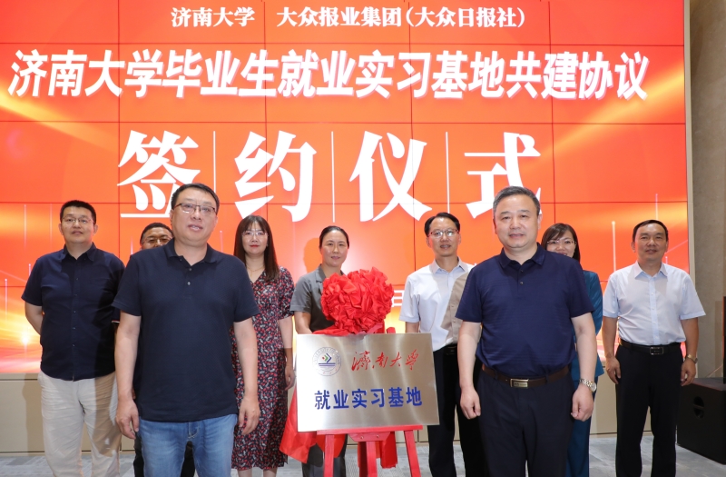 签约仪式上,党委学生工作部部长刘芝代表学校与齐鲁晚报副总编辑王健签订毕业生就业实习基地协议,查玉喜、蓝海为“ac米兰官方网站就业实习基地”揭牌。