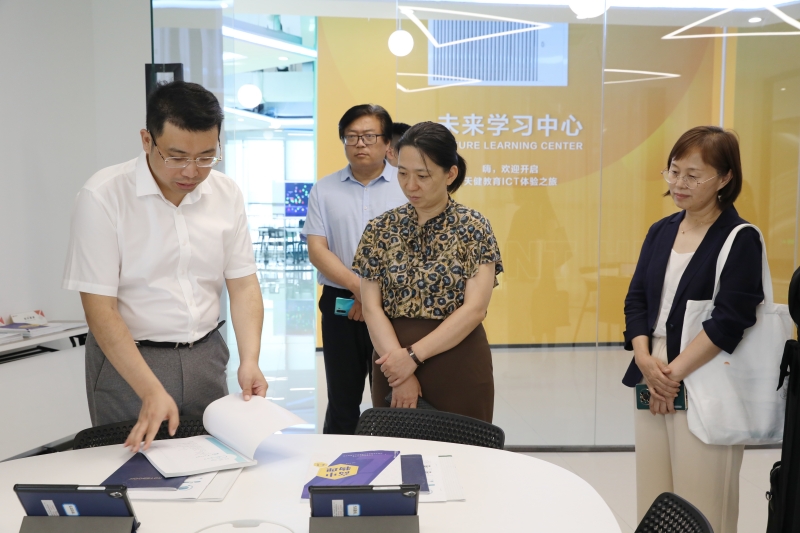 座谈会前,商华一行参观了企业与济南市教育局共同打造的济南教育创新中心,深入济南教育数字化展馆、未来学习中心、城市智慧教育运营中心,详细了解了教育新型基础设施及相关产品在城市教育数字化建设和教育改革评价中的应用情况,并看望了在企业工作的部分校友。