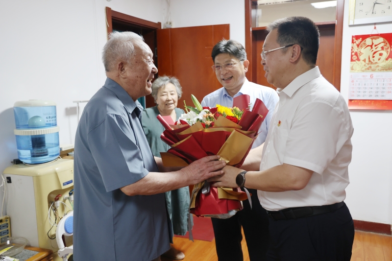 走访离休老党员时,校领导关切询问他们的身体和生活情况,一起追忆峥嵘岁月,共叙初心使命,畅谈幸福生活,也希望他们持续关心关注学校发展,祝福他们节日快乐、健康长寿。