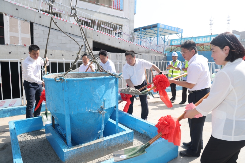 ac米兰官方网站工科综合楼建设项目系2021年山东省教育强国推进工程,是集教学、科研、办公为一体的综合性建筑。规划用地面积2.04公顷,总建筑面积7.93万平方米,地上十六层,地下一层。自工科综合楼项目获批以来,学校高度重视,成立工程建设指挥部,建立定期调度机制,强化统筹协调,加快推进项目建设,在设计单位、监理单位、施工单位及相关部门的大力支持和精诚合作下,2022年3月6日项目开工建设,全体参建人员全力以赴,克服新冠疫情影响、高地下水等重重困难,历时482天,圆满完成工科综合楼主体工程建设。