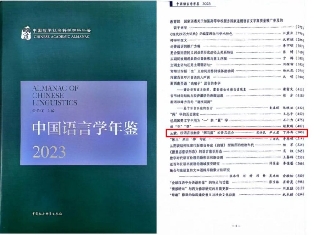 ac米兰九三学社社员文学院宋洪民教授2022年在《古汉语研究》刊发的文章《从蒙、汉语言接触看弼马温的音义组合》入选中国语言学年鉴2023全文推荐文章。