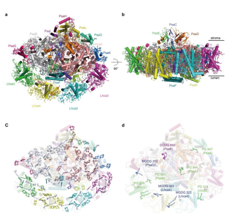 图2:Fa PSI-LHCI复合物2.46-Å分辨率的空间结构