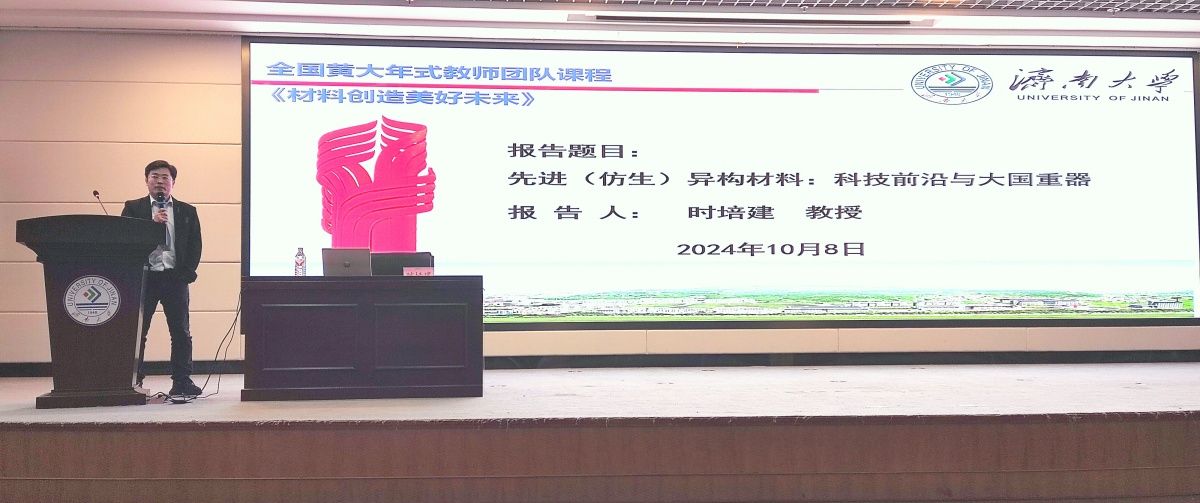 10月8日,全国高校黄大年式教学团队2024系列课程《材料创造美好未来》第二讲在第一学术报告厅举行。上海大学教授、香港城市大学助理研究员、ac米兰优秀校友时培建为材料科学与工程学院师生带来一场题为《先进(仿生)异构材料:科技前沿与大国重器》的课程讲座。讲座由材料科学与工程学院副院长段广彬主持,300余名师生聆听了讲座。