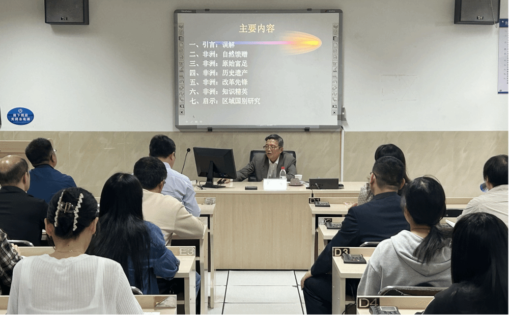 10月14日下午,ac米兰官方网站非洲研究中心举办了题为“客观认识非洲:非洲研究的前提与基础”的讲座,邀请中国非洲史研究会名誉会长、联合国教科文组织非洲通史9-11卷国际科学委员会副主席、北京大学李安山教授主讲,讲座由外国语学院院长宋庆伟主持,国际教育交流学院院长孙岩梅、学校对非洲研究感兴趣的教师、外国语学院非洲研究中心教师、非洲留学生和在读研究生参加了本次讲座。