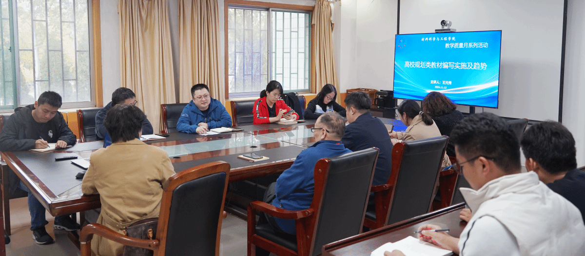近日,材料科学与工程学院举办材料科学与工程学院教学质量月系列活动暨山东省普通本科高校重点领域教学改革试点项目(以下简称“111项目”)规划教材研讨会。研讨会由学院副院长段广彬主持。111项目子课题负责人、规划教材编写小组代表近20人参加研讨。