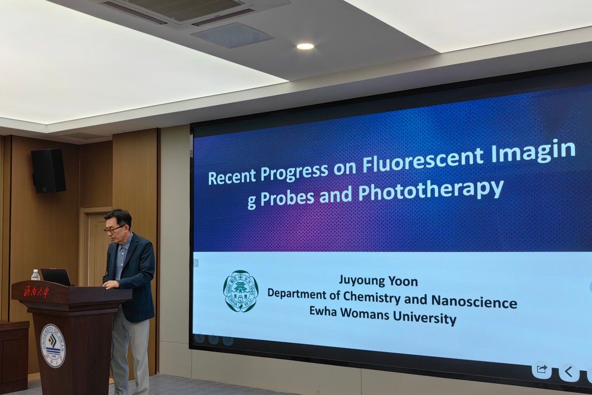 Juyoung Yoon教授的报告题目为“Recent progress on fluorescent imaging probes and phototherapy”,他详细介绍了荧光探针、光动力治疗和光热治疗方面的重要进展,分享了他们在新型荧光成像探针、智能光疗纳米材料领域的创新成果。报告内容条分缕析,高屋建瓴,为该领域的研究带来了新的思路和方向。