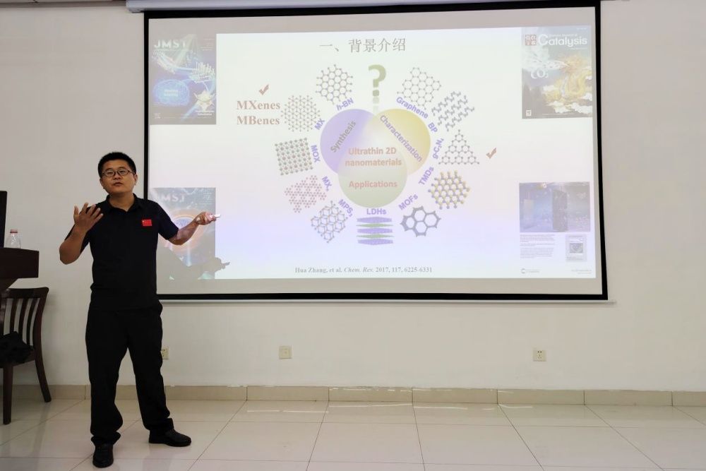 随后,江吉周教授作了题为“二维碳基材料光/电催化”学术报告。他围绕g-C3N4和MXene两类材料,重点介绍了其课题组近年来在二维碳基材料的设计、制备及其在光催化和电催化中的应用与机理研究以及未来发展方向。