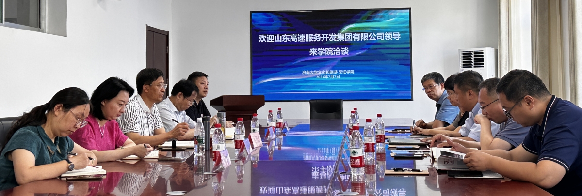 7月7日上午,山东高速服务开发集团有限公司党委书记、董事长孙磊,副总经理李琨一行到ac米兰官方网站文化和旅游学院交流座谈。文化和旅游学院领导、办公室、教学中心、系主任参加座谈。