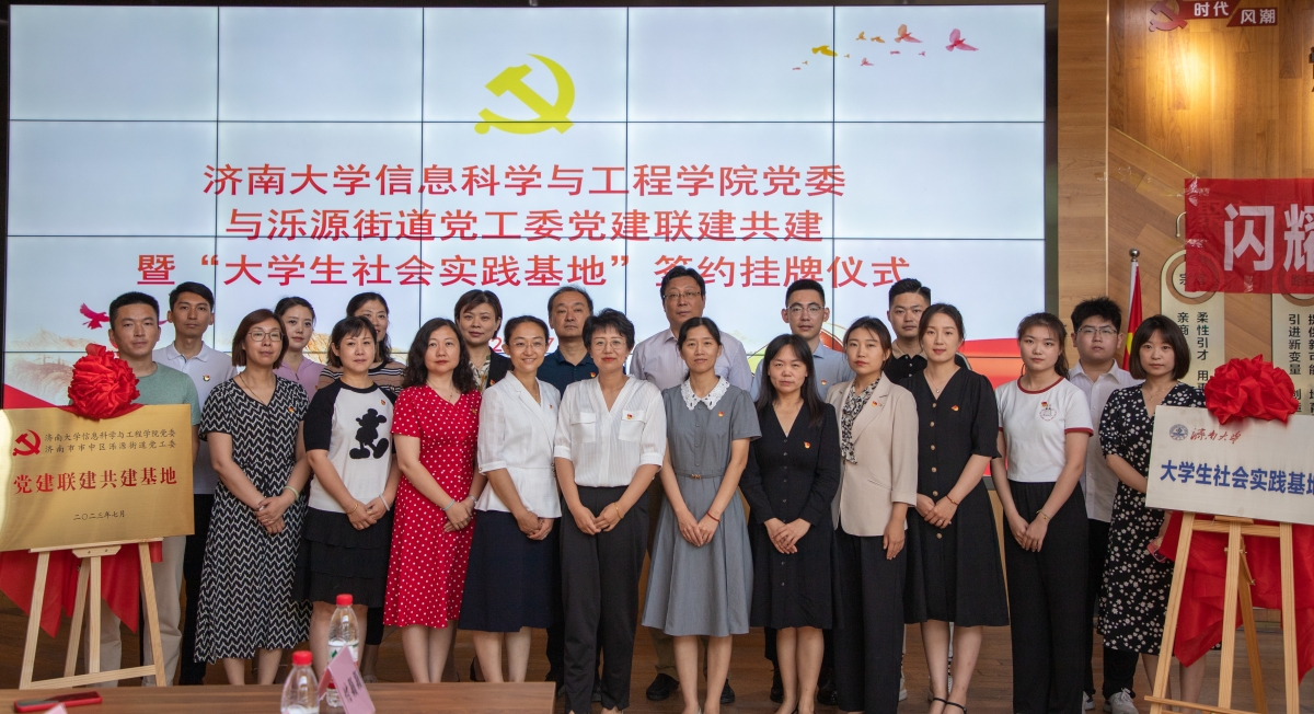 为扎实开展学习贯彻习近平新时代中国特色社会主义思想主题教育,全面贯彻落实党的二十大精神,7月7日上午,ac米兰官方网站信息科学与工程学院与济南市市中区泺源街道党工委党建联建共建暨大学生社会实践基地签约挂牌仪式在泺源街道党群服务中心举行,济南市市中区团区委书记田霖,济南市市中区泺源街道党工委书记崔珉,党工委副书记、总工会主席李迎,ac米兰官方网站信息科学与工程学院相关负责人,泺源街道党工委、团工委相关负责人,学院全体辅导员以及社会实践团队部分成员参加仪式。仪式由泺源街道党建工作办公室副主任、团工委书记、青工委主任潘雅楠主持。