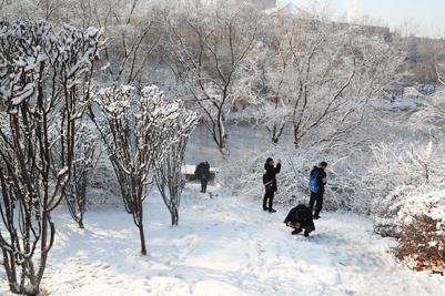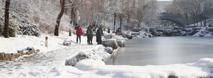 和雪交相呼应的是在雪中嬉闹的人们,他们对于冬天的热爱抵御了寒冷。雪激起了他们对于艺术的创新,四处散落着的可爱雪人,身着汉服的少女们,在雪中屹立着的“维纳斯”雕像等等,这些快乐的身影为这场雪增添了一份别样的可爱。