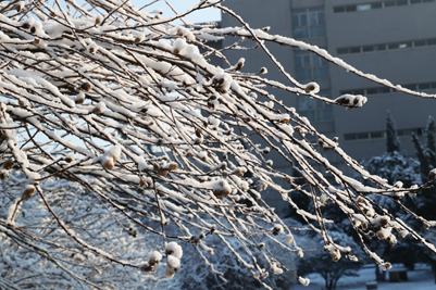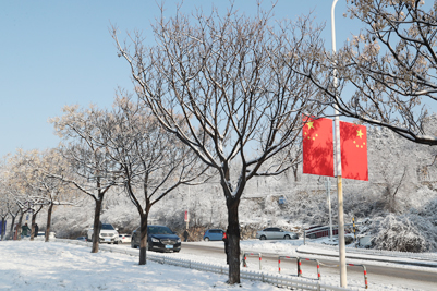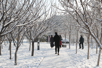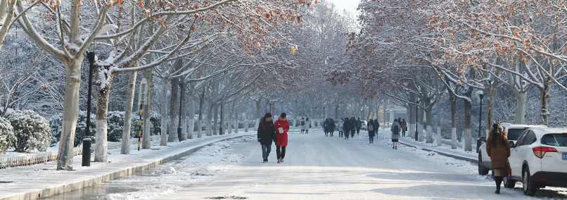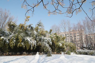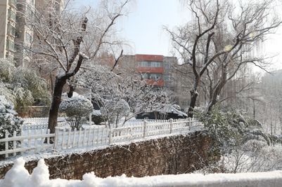 雪拥有神奇的力量,当平日的风景裹上雪的外衣后,便别有一番风味。我们熟悉的教学楼、街道和树木被雪紧紧的裹住,显得陌生但又熟。看习惯了平常模样的校园,下了雪之后,一切仿佛成了童话世界,穿着纯白的外衣,伴随着点点飘落的雪花,一切都变得浪漫起来。