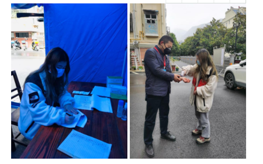 她是社区志愿者里为数不多的党员大学生,正是这份信仰,使她冲锋在前,勇于担当。在困难面前,她总是抢在其他志愿者前面:降温的时候主动值班到最晚、爬楼登记总是选择最高的楼层、轮换休息的时候总是以最快的速度吃完饭去接班......学院党委委托辅导员老师转达对庞庆澳的鼓励和关心,嘱咐她一定要注意身体,做好防护!庞庆澳同学动情地回复“在国家有困难、人民有需要的时候挺身而出,是我作为预备党员的责任和义务,我要时刻铭记并履行全心全意为人民服务的宗旨。同时,作为一名湖北人,我深知这次疫情的严重性。身处疫情‘重灾区’的我应当付出更多。我深深热爱湖北,这片生我养我的土地,我希望她能早日恢复以往的活力!我盼望她能够早日战胜新冠肺炎!湖北加油!中国加油!”