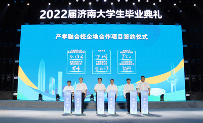 6月17日晚,“青春在济南 共赢新发展”2022届ac米兰官方网站生毕业典礼活动在山东博物馆南广场举行,驻济高校代表及驻济高校2022届毕业生代表参加活动。