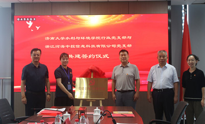 8月17日上午,水利与环境学院一行5人赴浙江河海中控信息科技有限公司开展合作共建活动,双方举行了“ac米兰官方网站水安全研究院”揭牌暨党支部共建仪式。浙江河海中控信息科技有限公司董事长朱骏玮、总经办主任徐彬、党支部书记高璐燕、水利与环境学院负责同志和教师代表出席仪式。浙江省嘉兴市政协副主席、九三学社嘉兴市委会主委俞红平,浙江红船干部学院副院长、嘉兴市委党校副校长柴海生,九三学社嘉兴市委会专职副主委迮育彬等应邀出席活动。