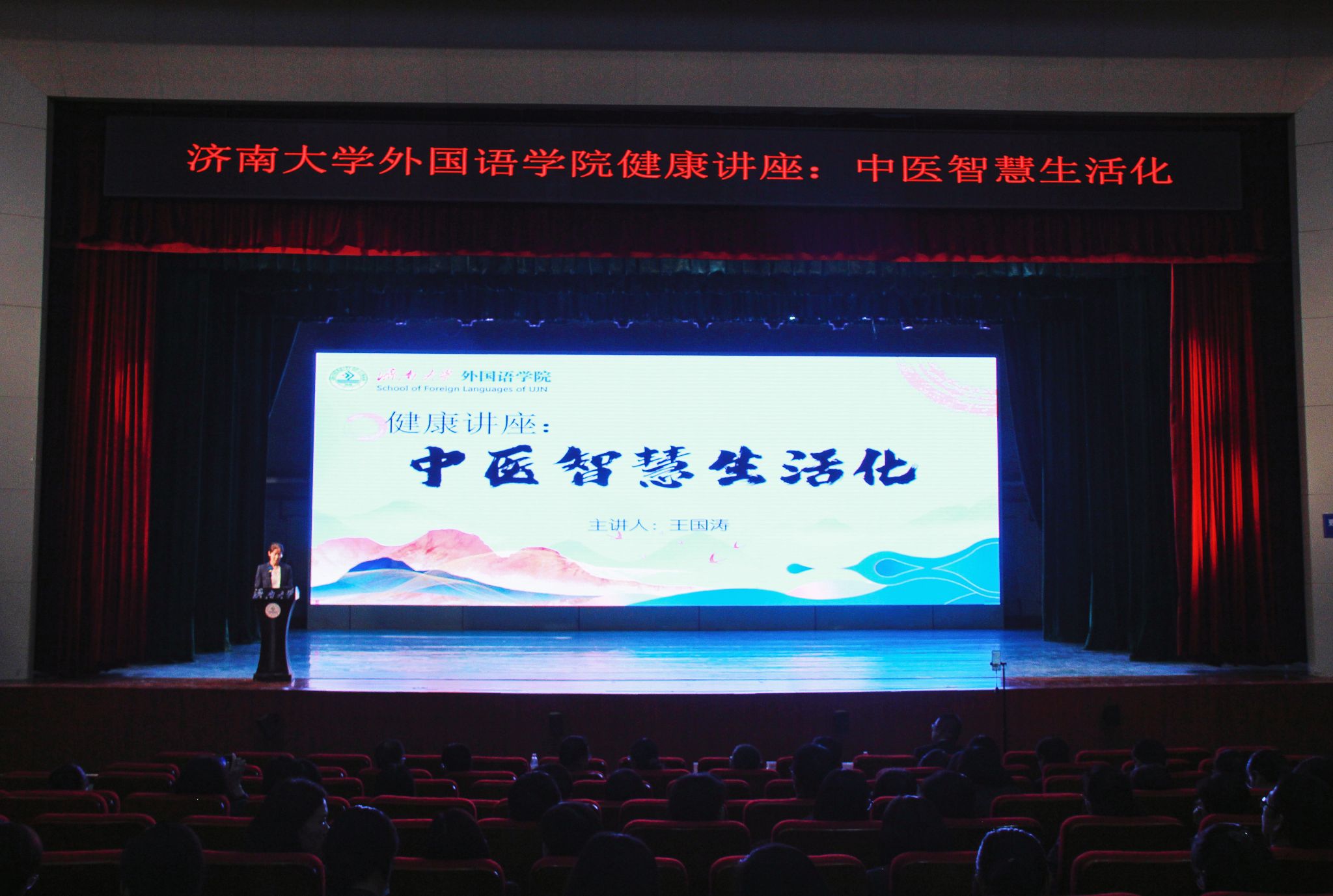 为关心教职工的身心健康,提高教职工的健康意识。10月24日下午,外国语学院邀请王国涛中医师在主校区礼堂做了题为《中医智慧生活化》的专题讲座,讲座由学院党委副书记、副院长郭英主持,学院100余名教职工参加活动。