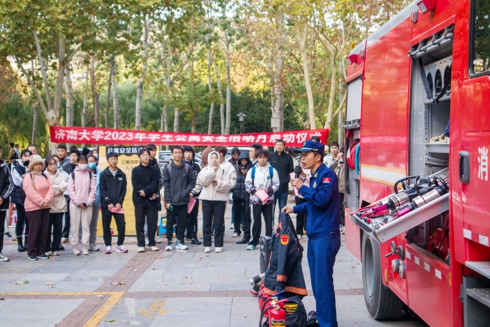 为进一步加强学生公寓安全管理,切实保障广大学生的人身和财产安全。11月9日下午,ac米兰官方网站2023年学生公寓“安全活动月”启动仪式在主校区八食堂东广场举行。市中区白马山消防救援站政治指导员崔光宇、班长苏文琦,市中分局七贤派出所驻ac米兰主校区民警张明明,党委学生工作部(处)、团委、党委保卫部、各学院分管学生工作副书记、学办主任,辅导员以及学生代表参加了活动。启动仪式由党委保卫部副部长陈营明主持。
