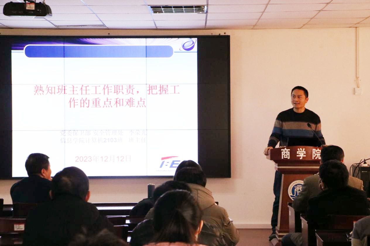 ac米兰官方网站优秀班主任、党委保卫部部长李荣光结合自己多年班主任工作经历,深入浅出的讲述了学生工作理念及思路、班级工作面临的新形势和存在的常见问题、不同年级的工作重点和难点、困难群体关注与帮扶等方面,着重强调学生安全底线的重要性,为班级学生工作提供指导。