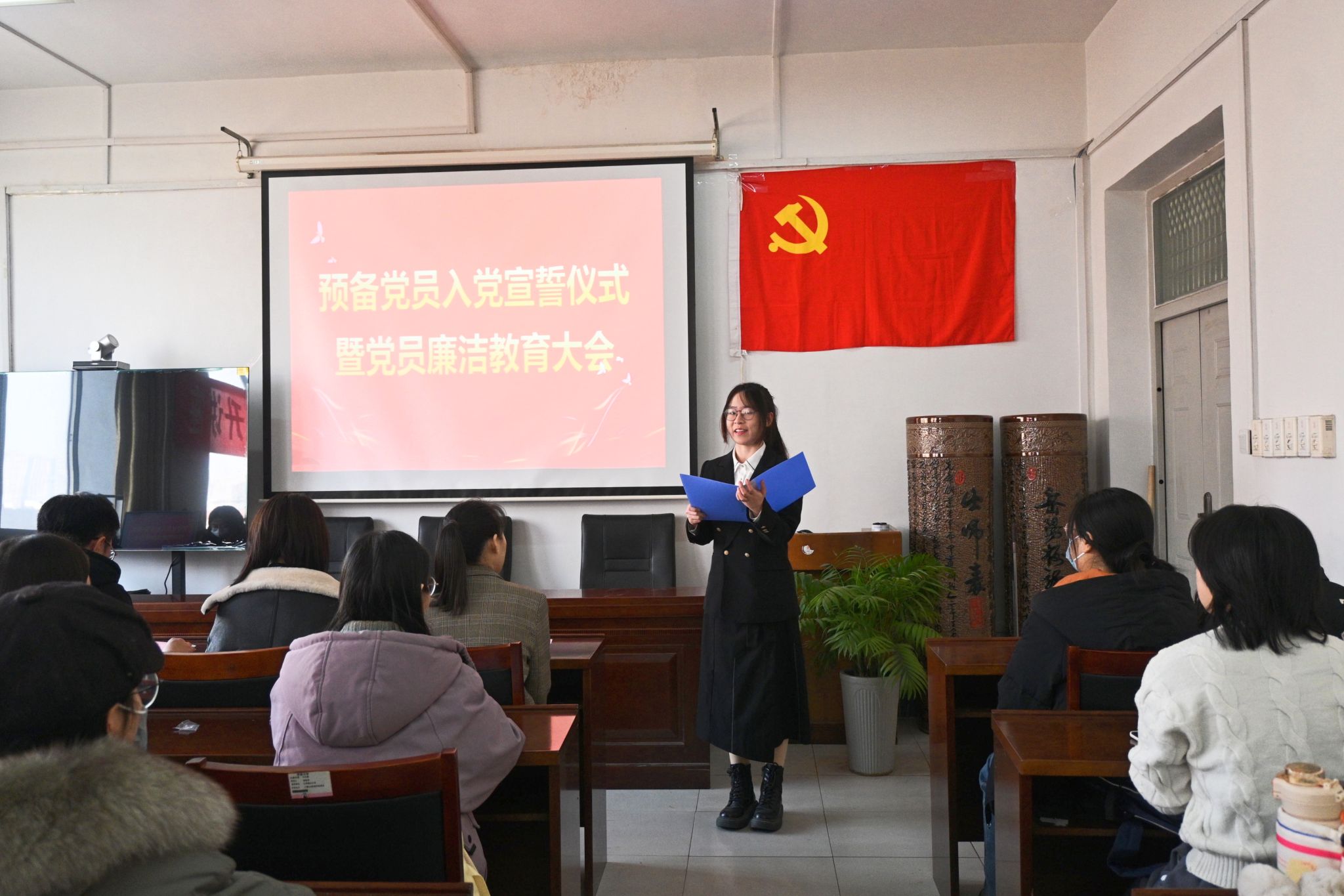 潘颖代表学院党委向新党员同志加入党组织表示热烈祝贺,并提出三点希望,一是希望同学们将入党日期当作自己的第二个生日铭记在心,在组织上入党的同时,思想、行动上也要入党;二是希望同学们履行党员义务,践行入党誓词,充分发挥共产党员的先锋模范作用;三是希望同学们厚植文化自信,努力践行社会主义核心价值观,将个人发展符合国家社会整体需求,让“小我”自觉融入“大我”,让个人与时代共振。