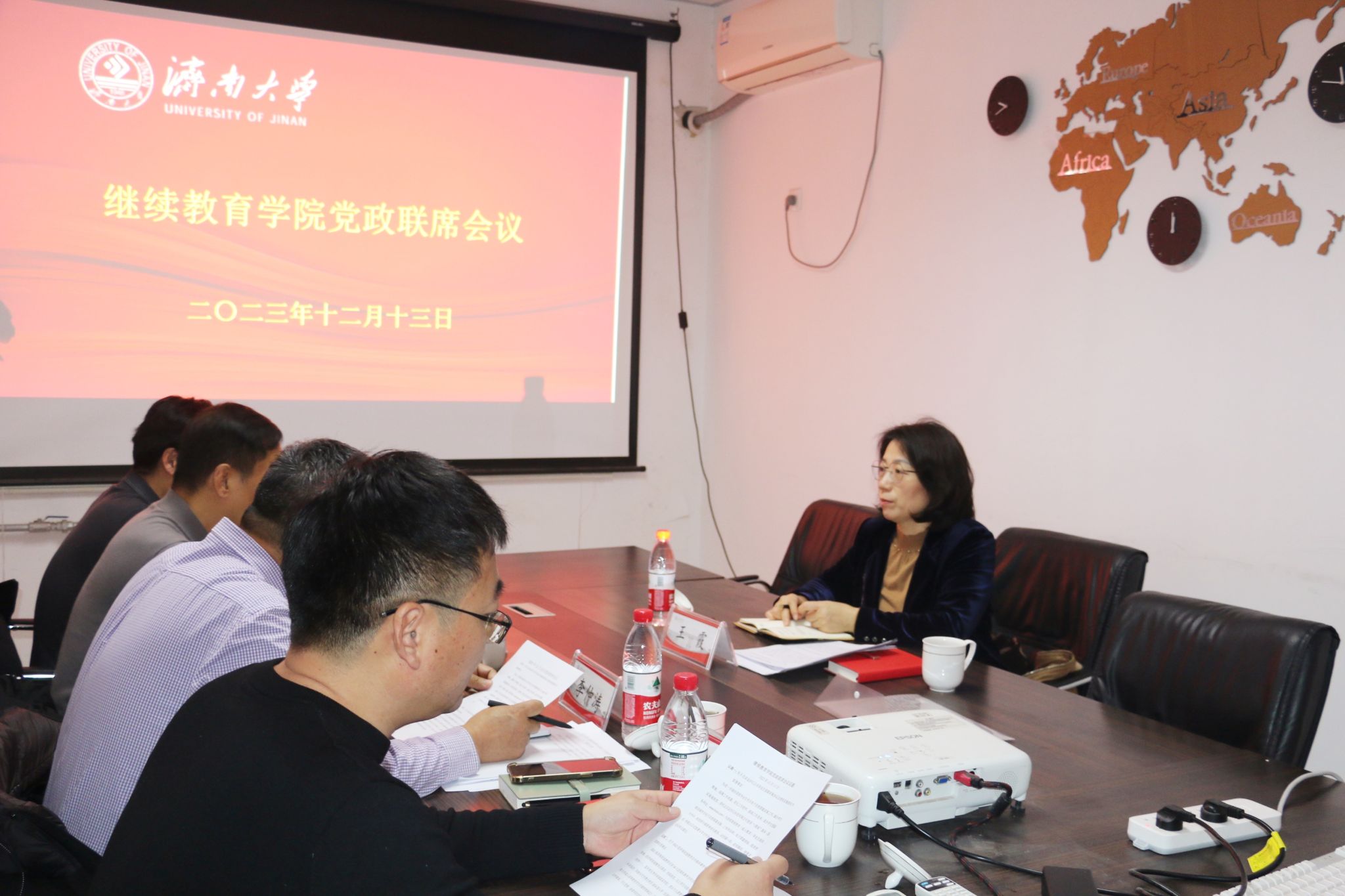 12月13日下午,学校党委常委、副校长王霞到继续教育学院调研,全程列席并指导学院党委会、党政联席会。学院党委书记、院长孙喜武主持会议。