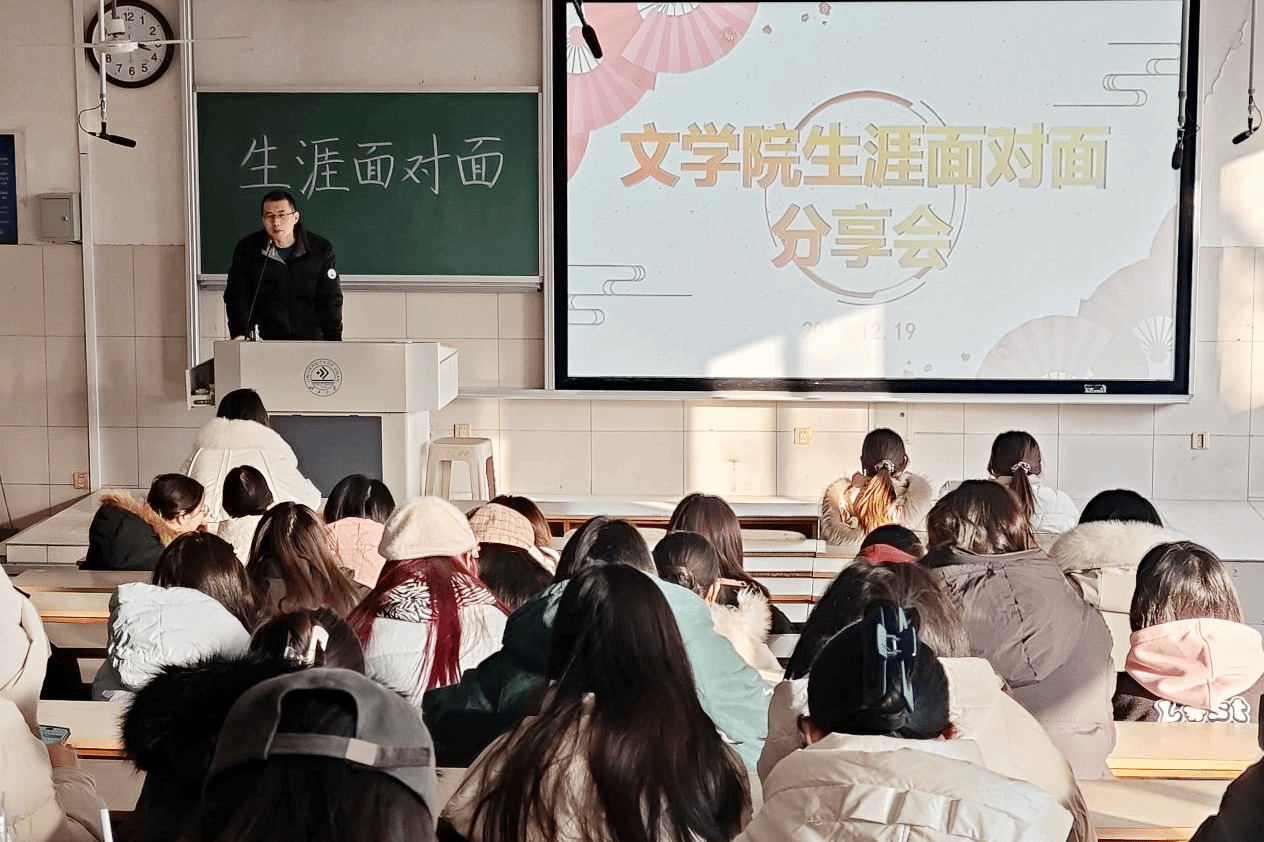 为帮助学生立足实际,找准定位,科学合理地规划学业发展,通过教师传授、朋辈引领为大三学生提供学业规划辅导,帮助学生正视发展困惑,理清发展思路,形成“脚踏实地、奋力拼搏 ”的价值理念,12月19日,文学院举办“生涯面对面”分享会,活动根据不同专业分为三个会场,邀请3位专业教师和9位优秀学生代表从推免、考研、竞赛等方面展开交流。本次活动由辅导员张莉主持,2021级400多名同学踊跃参加。