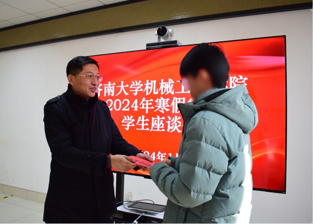 机械工程学院积极响应学校组织开展的2024年寒假家访活动,学院认真筹备、精心部署,1月12日上午,在机械楼A324开展“家访传温情,同心话成长”2024年寒假家访学生座谈会。学院党委书记程涛、各年级辅导员及部分家访学生参加座谈会,座谈会由学院党委副书记孙成政主持。