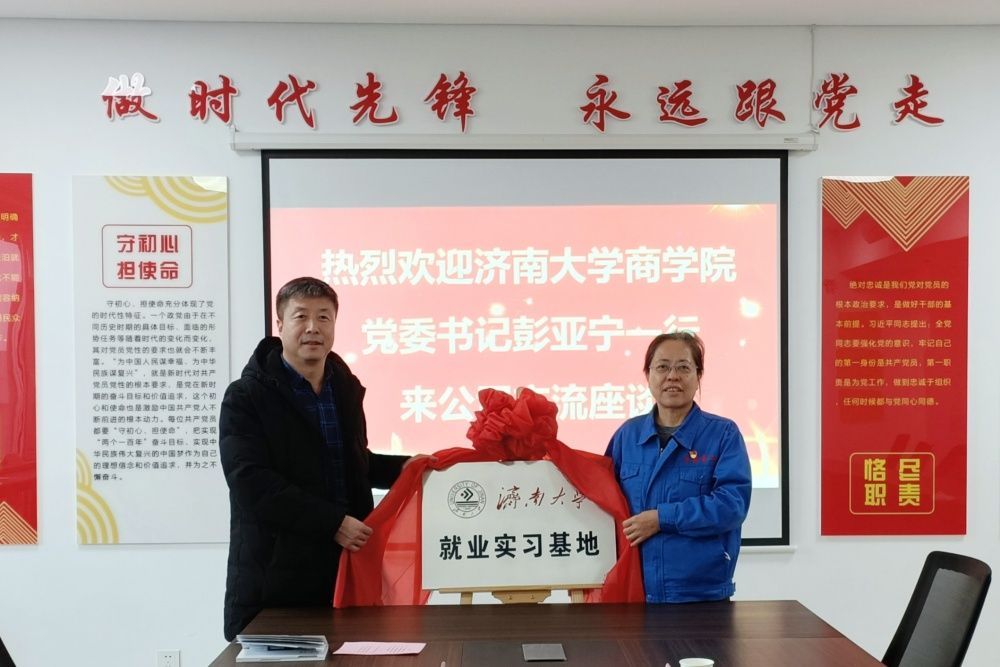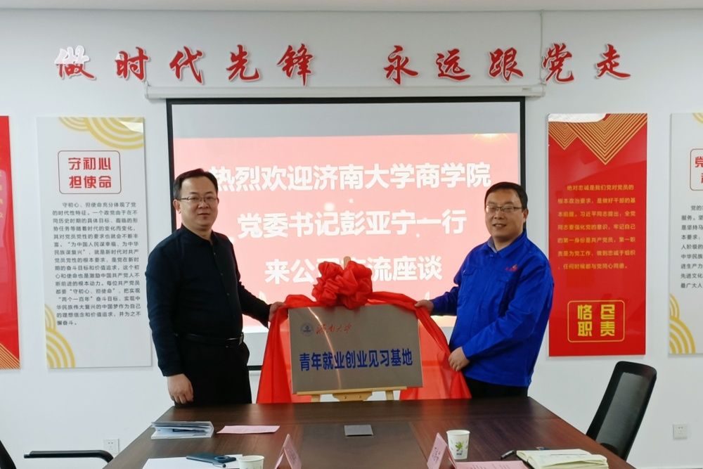 在山东天瑞重工有限公司的走访座谈中,党委书记、常务副总经理陈茹介绍了企业发展情况、人才需求、校企合作意向等,彭亚宁一行重点就学院人才培养、学生实习、毕业生就业等问题与企业进行了商讨,希望双方能够本着“互补互利、合作共赢”的原则,在融合发展、岗位需求、实习就业等方面开展多领域、深层次的合作。座谈会上,商学院分别与山东京博控股集团、山东天瑞重工有限公司签订了毕业生就业基地和青年就业创业见习基地协议,并举行了揭牌仪式。