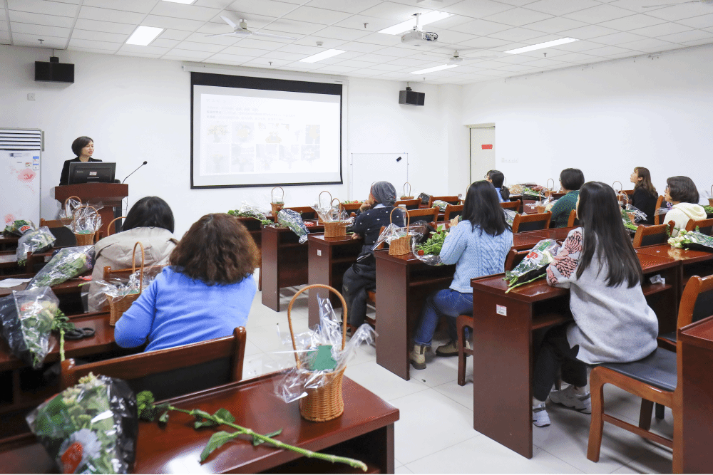 学院邀请了济南市花艺设计师郝俊美为大家讲解了插花艺术的基本知识,并现场指导大家制作插花作品,参与活动的老师了解插花技巧的同时放松了心灵,在紧张的工作中领会了另一种修炼心灵的方式。