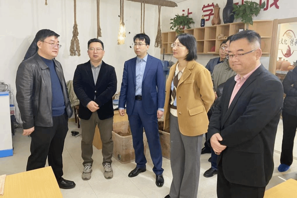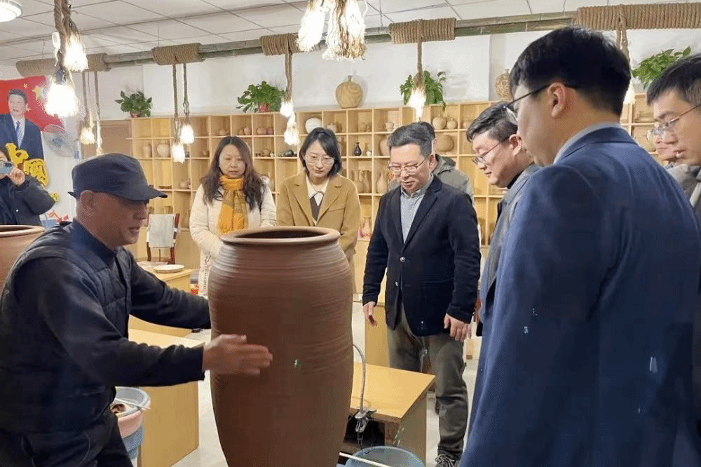 座谈会上,王政首先对美术与设计学院一行的到来表示了热烈的欢迎,并就腊山街道发展“康养经济”的定位和政策进行了详细阐述,希望借此机会加深校地合作关系。张家庄村党支部书记李保勇就村庄的历史沿革、党建阵地打造、制陶产业发展等情况进行了介绍。在调研过程中,美术与设计学院一行参观了张家庄村党群服务中心,深入陶器制作现场,实地查看了制作流程,与手工艺人进行了交流。