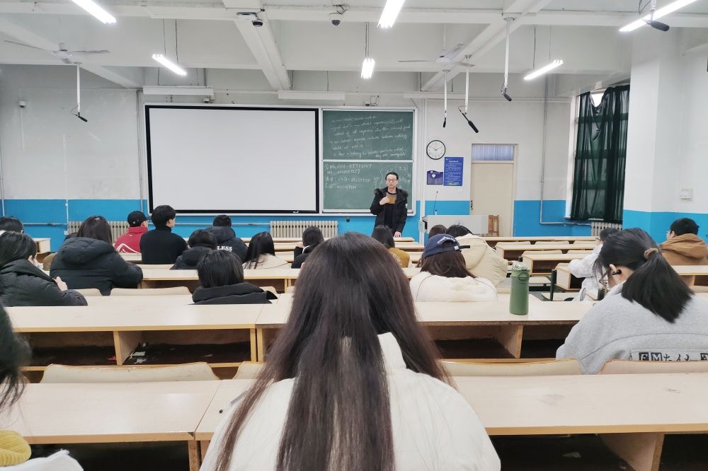 班会上,老师们针对本班同学学业成绩和专业特点开展了别开生面的主题教育。国贸2202班班主任任启平老师以“拥抱数字新时代:挖掘无限可能”“关注变化的世界和中国:把握时代脉搏”“爱国爱党爱人民:传承民族精神”“做好自己的规划:实现人生价值”“关注自己的安全和健康”五个主题跟同学们进行互动与深入交流,生动开启“开学第一课”,切实将学科专业特点和学风班风建设相结合,把思想性、教育性和知识性、趣味性相结合。经济2303班班长陈子恒、团支书刘子怡在会上带领同学们学习了习近平新时代中国特色社会主义思想、党的二十大精神。班主任赵芳对班会作了点评,希望同学们树立正确三观,积极培育社会主义核心价值观,加强对两会精神的学习,并指导学生做好学业规划,鼓励同学们敢于承担责任,迎接挑战,努力奋斗。同学们纷纷表示,身为年轻人肩负着时代的重任,要进一步坚定信念,充满干劲,努力拼搏,矢志不渝的为中国式现代化建设贡献自己的力量。