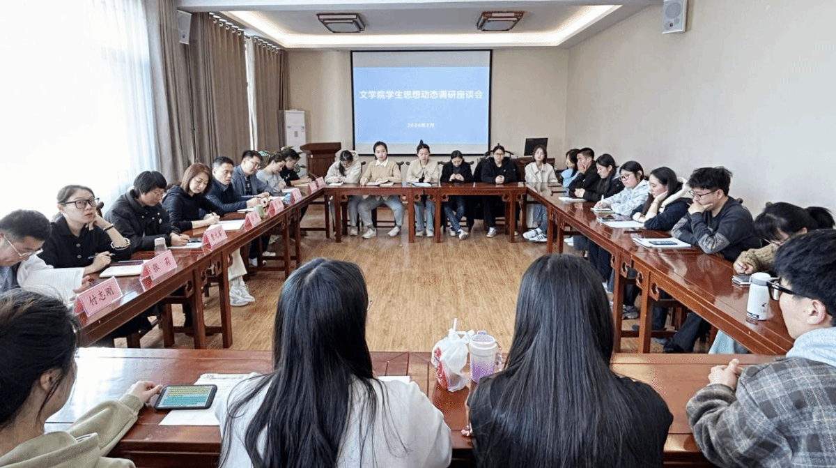 新学期为全面掌握学生思想动态,及时了解学生在学习、生活等方面的实际问题,加强学院学生教育管理服务工作的实效性,3月19日,文学院在3教419召开本学期学生思想动态调研座谈会,学院党委副书记、副院长潘颖,挂职党委副书记李杨,全体辅导员,教学管理办公室相关人员,各年级学生代表、少数民族学生代表、各学生组织代表参加座谈。