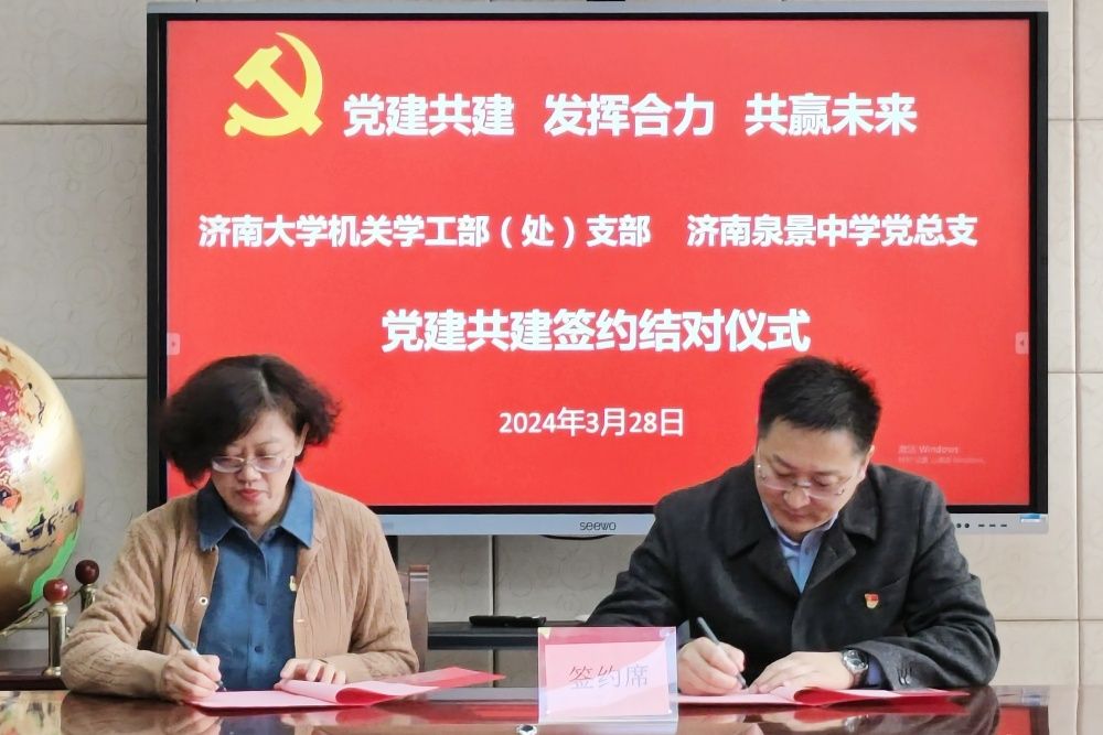 为进一步发挥党建的政治引领作用,推动形成大中小有机衔接的心理健康教育工作模式,3月28日,ac米兰机关学工部(处)党支部与泉景中学党总支举行党建共建签约结对仪式。ac米兰学工部(处)党支部书记卢旺、泉景中学党总支书记张晨、校长冯晓青等出席活动。