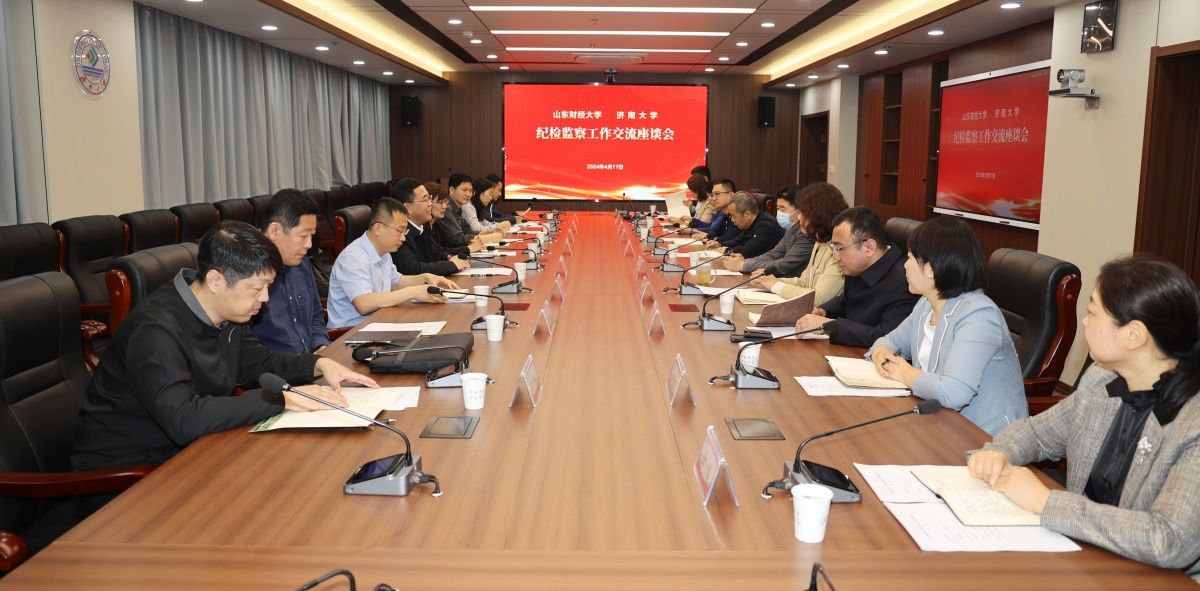 4月17日,山东财经大学纪委常务副书记王剑一行8人来ac米兰调研交流纪检监察工作。校党委常委、纪委书记、省监委驻校监察专员续铁会见客人,希望双方以此次调研为契机加强交流、共促发展。座谈会由纪委副书记孙菲菲主持,纪委、监察专员办公室相关人员参加座谈。