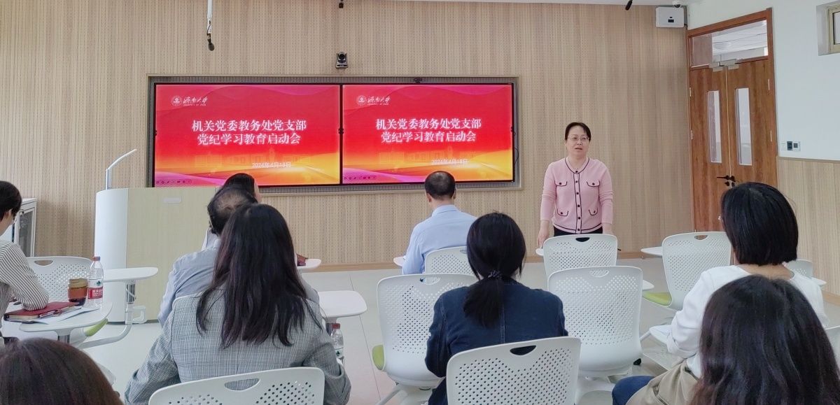 4月18日下午,机关党委教务处党支部在十教503召开会议,学习贯彻习近平总书记关于党纪学习教育的重要讲话和重要指示精神,部署党纪学习教育工作。会议由教务处党支部书记张婷主持,全体党员参加。