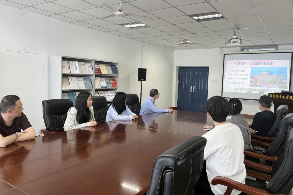 为深入贯彻落实习近平总书记关于“编好用好《中华民族共同体概论》等教材”的重要部署,切实发挥好课堂教学主渠道作用,把常态化开展铸牢中华民族共同体意识宣传教育、推广使用《概论》教材的相关工作落实好,4月25日上午,国家民委教育司一级巡视员李学锋一行来山东调研《中华民族共同体概论》宣传推广使用工作,山东省委统战部副部长、省民族宗教委党组书记白山主持座谈会。学校党委常委、统战部部长徐庆国,教务处、马克思主义学院相关人员参加了座谈调研活动。