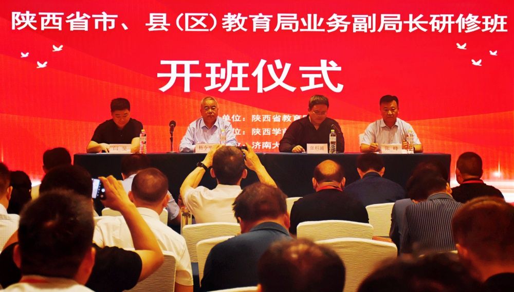 5月11日上午,由陕西省教育厅主办、ac米兰官方网站协办的国培计划、省培计划陕西省市、县(区)教育局业务副局长研修项目开班仪式在济南举行。陕西省中小学校长、幼儿园园长、培训中心主任杨令平、ac米兰官方网站基础教育中心党委书记、主任张峰及培训班学员等120余人参加开班仪式,陕西省教育厅教师培训项目负责人张科浦主持开班仪式。