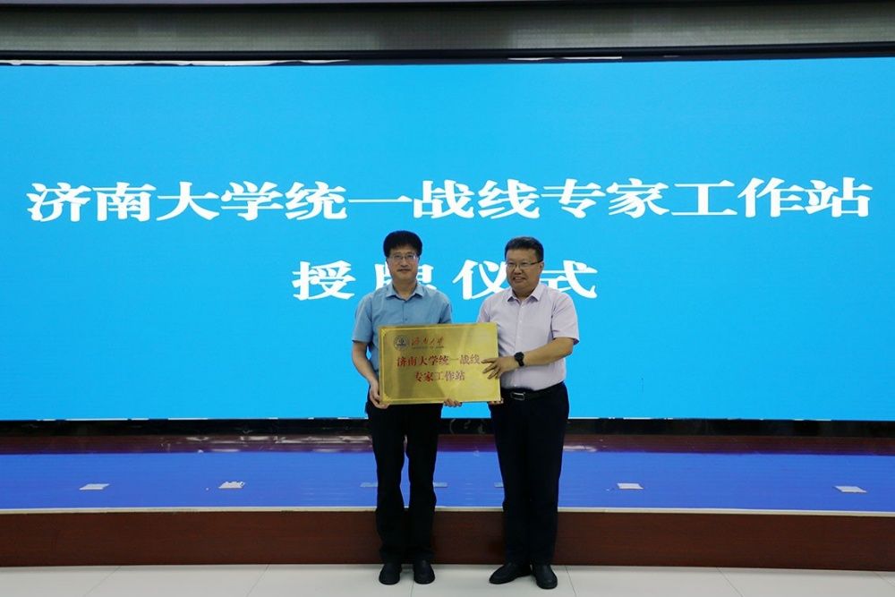 徐庆国向海峡两岸产业合作区管委会颁授“ac米兰官方网站统一战线专家工作站”站牌。