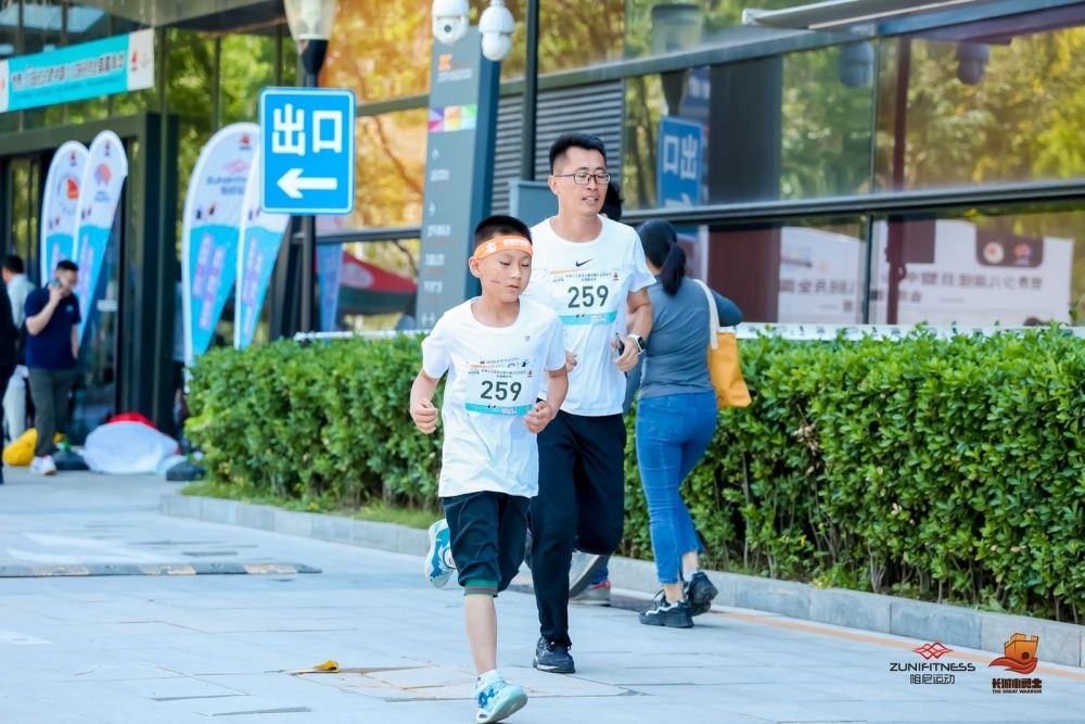 在比赛期间,学生还与家长一起参加了世界田径联合会发起的“世界田径一英里挑战赛(迷你马拉松)”。在这个属于孩子们的迷你马拉松上,亲子携手,尽情奔跑,穿越长达1.6千米的马拉松赛道,冲过了人生第一个马拉松终点。