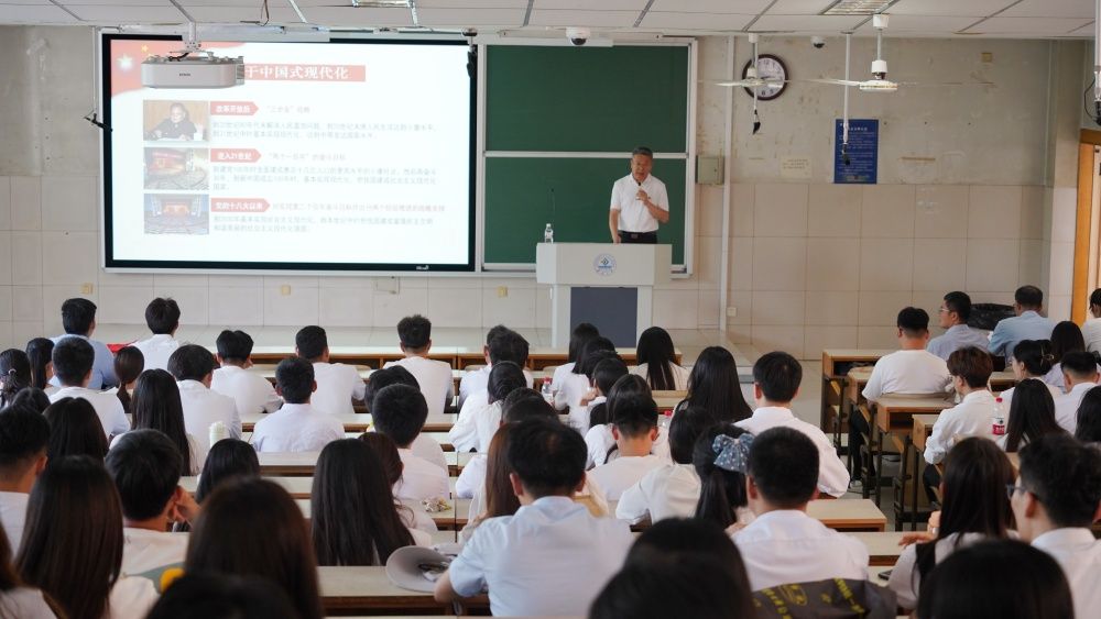孙卫星以《筑牢信仰之基,坚守纪律底线,牢记嘱托为推进中国式现代化挺膺担当》为主题,面向毕业生党员讲授专题党课。孙卫星强调,作为青年党员要认真学习深刻领会习近平新时代中国特色社会主义思想,结合新质生产力与高质量发展的要求,坚持学思用相贯通,做到知信行相统一;要通过党纪学习教育,进一步强化政治纪律和政治规矩,做到学纪、知纪、明纪、守纪,系好人生每一粒扣子,做政治上的明白人、守规矩的老实人、有担当的党员先锋;要始终牢记习近平总书记嘱托,坚定不移听党话、跟党走,争做有理想、敢担当、能吃苦、肯奋斗的新时代好青年,在未来的学习、工作岗位上,结合自身的专业优势,砥砺奋进前行,在中国式现代化的伟大征程中激扬青春、挥洒汗水、服务社会、奋勇争先,展现青春作为、彰显青春风采、贡献青春力量,奋力书写为中国式现代化挺膺担当的青春篇章。