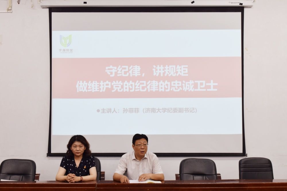 孙菲菲以“守纪律 讲规矩 做维护党的纪律的忠诚卫士”为题,为全体党员讲了一堂党纪教育专题党课。她对党的纪律的内容特征和历史发展进行了阐释,并详细介绍了《党的纪律处分条例》的发展脉络、修订背景意义和主旨要义,通过典型案例为大家解读了政治纪律、组织纪律、廉洁纪律、群众纪律、工作纪律、生活纪律六大纪律。她希望全体党员干部做到学纪、知纪、明纪、守纪,确保每一项纪律要求都能入脑入心、见诸行动,作为党员要严于律己,做维护党的纪律的忠诚卫士。面对复杂的反腐败斗争形势,党员干部要做到责任在心,使命在肩,担当在身,做党纪的坚定信仰者、积极的传播者、模范的实践者。
