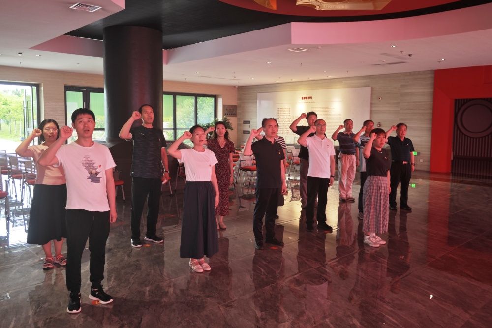 胶东红色文化陈列馆是胶东(烟台)党性教育基地的主体馆和核心馆。陈列馆共分5个部分,全面展示了胶东近代屈辱与抗争史、胶东革命斗争史、烟台社会主义革命和建设史、烟台改革开放发展历程、建设中国特色社会主义新征程等五段历史。珍贵的历史照片、动人的英雄事迹、珍藏的历史文物都生动地展现了胶东人民不屈的奋斗历程,也回顾了烟台城市发展的历史场景,让大家感受到了新中国蓬勃发展的壮丽篇章。最后,全体党员面向党旗,高举右拳,庄严地重温了入党誓词,回溯了入党初心。